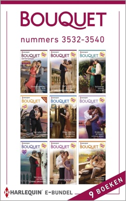 Kiest u voor gemak én extra voordeel? Met deze bundel heeft u in één keer alle negen Bouquet-romans (nummers 3532 t/m 3540) van de maand in handen. Zo kunt u lekker doorlezen en nog gemakkelijker genieten van uw favoriete reeks! (1) Onverbiddelijke kus van Caitlin Crews (Het Corretti imperium) Al na één dans is Elena smoorverliefd op Alessandro Corretti de aartsvijand van haar familie. (2) Hartstocht en overgave van Melanie Milburne Eerst wilde ze niet met hem trouwen, nu moet ze wel. Angelo Belladini's wraak op Natalie zal héél zoet zijn (3) Italiaanse passie van Maya Blake Cesare moet zijn heftige verlangen naar Ava onderdrukken. Maar of dat lukt? (4) Verraderlijke gevoelens van Julia James (Extra dik!) Wat wil ze van hem? Alexei Constantin vertrouwt de beeldschone Eve voor geen meter (5) Onverwachte verovering van Emma Darcy (Playboy of tycoon?) Michael Finn, de schatrijke zakenman, is geïnteresseerd in háár? Lucy gelooft er niets van! (6) Grieks en arrogant van Catherine George Eleanor had nooit verwacht zo dicht bij de ongenaakbare Griekse tycoon Niko Markos te kunnen komen en dat dat zo gevaarlijk voor haar zou zijn (7) Verrassende verleiding van Lynne Graham (Bruiden & biljonairs) Waarom wil biljonair Bastian Christou juist Emmie, zijn kleurloze stagiaire, als date? (8) Schandelijk verlangen van Dani Collins Lauren moet Paolo Donatelli vertellen dat ze hun verboden passie niet langer kunnen verbergen (9) Tropische romance van Robyn Donald Joanna zit vast op een tropisch eiland, met de knappe, maar vreselijk arrogante Luc McAllister!Review: